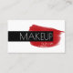 Modern makeup artist minimalist business card with red makeup smear and black accents. The perfect trendy design for makeup artist or for any other beauty related business. A simple and professional way to introduce your business. Personalise your details to create your own unique business card.
