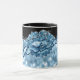 Makeup artist mug featuring glamourous blue lipstick kiss with glittery zebra stripes and white sparkles over elegant black and light blue glitter bokeh background. This stylish mug is perfect for beauticians, cosmetologists, hair and makeup beauty salon owners and others in the beauty industry. If you need any help with this design, feel free to contact me.