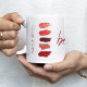 Lipstick colours swatches makeup artist mug with name, title and your text in ruby red script lettering. Perfect personalised gift for a beautician, cosmetician, makeup artist, beauty salon artist or manager, lip colours or other beauty products distributor.