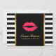 Makeup Artist Red Lips Modern Black White Stripes Invitation Size Business Cards.