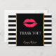 Makeup Artist Red Lips Modern Black White Stripes Thank You Postcards.