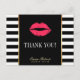 Makeup Artist Red Lips Modern Stripes Thank You Postcard