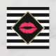 Makeup Artist Red Lips Salon Modern Stripes Unique Square Business Card