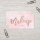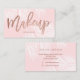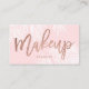 An elegant modern, stylish makeup artist business card with elegant script hand lettering style typography in faux rose gold on a modern tropical white palm tree leaf and blush pink colour background.. If you need any customisation, don't hesitate in contacting me