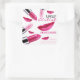 Makeup artist design with shiny pink lipsticks and ruby pink female lips over white background. This stylish sticker is perfect for beauticians, cosmetologists, beauty salons and other similar professions.
