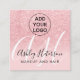 An elegant modern double letters monogram square business card , stylish makeup artist business card with elegant modern simple hand lettering style typography in white on a faux pink glitter and pastel blush pink trendy and elegant background. all text is customisable, add your social media. add your logo.
