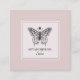 An elegant chic salon business card featuring an earthy organic soft muted pink blush background with an artistic illustrated butterfly. The muted colour represents the soft earthy subtle colours that are often used in makeup to transform our skin tones, while the butterfly is a symbol of transformation and renewal; perfect for the beauty profession. A modern abstract chic style branding solution for your services. Blue border and banner.