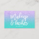 An elegant modern, stylish makeup lashes artist business card with elegant script hand lettering style typography in white on a faux mermaid purple lavender glitter and turquoise trendy and elegant background. If you need any customisation, don't hesitate in contacting me