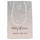 An elegant modern monogram , stylish makeup artist business card with elegant modern simple hand lettering style typography on a faux silver glitter and pastel blush pink trendy and elegant background. all text is customisable, add your social media.