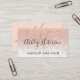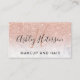 An elegant modern monogram , stylish makeup artist business card with elegant modern simple hand lettering style typography in white on a faux rose gold glitter andwhite marble trendy and elegant background. all text is customisable, add your social media.