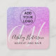 An elegant modern double letters monogram square business card , stylish makeup artist business card with elegant modern simple hand lettering style typography on a faux pink purple glitter and pastel blush pink trendy and elegant background. all text is customizable, add your social media. add your logo.