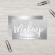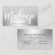 An elegant modern, stylish makeup artist business card with silver glitter ombre metallic foil. all text is customisable, add your social media.