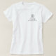 Present your best self to your clients. Your personalised employee name in black handwritten script typography and business logo overlay a white (or other light coloured) t-shirt. Personalise with your logo, and your name/ business/speciality on the front. The back sports your personal logo and your chosen saying/tag line or other copy of your choice. Makes a chic and stylish statement that will smartly showcase your business in a professional manner. Matching business cards are also available.