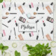 Makeup Stuff Illustrated Pattern Personalised Name Tea Towel