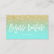 An elegant modern, stylish makeup artist gift certificate business card with elegant script hand lettering style typography in white on a faux gold glitter and teal ocean trendy and elegant background. If you need any customisation, don't hesitate in contacting me