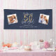 Blue and gold modern script stylish multi photo 50th birthday party banner design. Modern gold effect script text. Part of a collection.