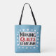 "Making Quilts Is My Jam" is a cute text design in blue with black and red text, along with a white accent shape and white textured whimsical dots surrounding it.