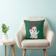 "Making Spirits Bight" green and red holiday pillow with ghost wearing a Santa hat and holding Christmas lights