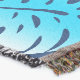 A quality printed throw has its advantages. This is a much finer weave throw than its loopier cousins, and though lighter, it is worth the investment for custom room accessorizing. The back is much prettier than the typical brown, and the fringe on the long sides very vivid, the selvage nicely done. Before photographing, I washed the throw in cold water, delicate, with a thicker woven throw the same size. On tumble dry low, this throw was dry in half the time as the other. This is a very practical quality if you use throws for furniture covers or to wrap up in frequently. The sleekness of the fabric makes it a great layer for accenting or protecting without the feeling of sitting on too much stuff. Perfect for napping or when you feel a light chill coming on. The color printing is beautiful and on this fabric, matched the design and color of my Photoshop image. This is an advantage for blending room fabrics and colors. The fringe on the short sides prints the colors from the design image and therefore varies from the side fringe. I streaked a white fractal line through the plaid pattern to give the illusion of weaving. This printed as crisp as an illusory thread, and put some white in the short side fringe, showing another advantage of print vs loomed- for artistic purposes, line lines, detail, and color integrity can be planned and preserved. My loomed throws have color limitations and more of a needlepoint texture. Print throws reproduce an exact image. The throw felt a little stiff straight out of the package, but this went away in the first delicate wash. Of course I searched the wash water for ink or bleeding and there was none.