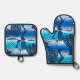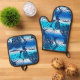 Makua Monstera Tropical Hawaiian Blend Navy Oven Mitt & Pot Holder Set