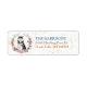 The left side of these return address labels feature an image of a spring flower wreath in colours of soft pink, blue, gold, green and cream. At the centre is a watercolor portrait of a Malamute dog. Tiny gold confetti gives a subtle sparkle to the background. Your custom text is in blue and brown gold at the right.