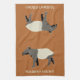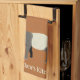 Create a personalised gift for your favourite animal lover when you add a name or other custom text to this kitchen towel. It features my realistic style illustration of a Malayan or Asian tapir in charcoal grey and cream. The graphic is set against a cinnamon or copper orange coloured background. When folded in half the graphic appears on both sides of the towel with your custom text below.