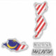 Malaysia Flag Charming Patriotic Map Sticker in the outline of the Malaysia map. The map is infused with the pattern and the colours from the Malaysia national flag. Small stickers with the country name are also included. Text is fully customisable using "Customise it!" feature. Malaysia map sticker is the perfect sticky gift that can be placed anywhere your heart desire. © CoutriesOfTheWorld