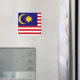 The Malaysian flag is a flag with fourteen horizontal stripes and in the left corner a blue field with a crescent and a 14-point star. The used colours in the flag are blue, red, yellow, white. The proportion of the Malaysian flag is 1:2. The Flag of Malaysia was adopted in 1950. The first use of the current flag design was in 1950. The last change to the current Malaysian flag design was in 1963.
