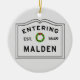 Buy one for everyone on your Christmas gift list. Christmas holidays in New England would not be complete without a festive Entering Malden ornament. Great gift idea for someone living in the town of Malden MA, or a Malden neighbourhood like Upper Highlands / Oak Grove, Forestdale, Linden, Edgeworth, West End, Malden Centre / City Centre, Island Hill, or Suffolk Square West. Give one to your parents, grandparents, newlyweds, welcome to the neighbourhood, housewarming you name it!