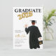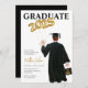 Graduation Invitation for guy's graduation party. Male portrait drawing graduate in a black cap and gown, brown hair and gold class of 2025 balloons. Personalise all of your grad's party details for a unique graduation invitation.