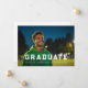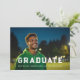 Celebrate the graduate's achievement in style with this 1-photo graduation announcement perfect for a male athlete. It features a sporty, strong and bold "graduate" font in white overlayed on top of the photo. Upload your own photo and add the graduate's name, school and degree (if applicable). This announcement works for high school and college graduations. On the back of the card is more space to talk about the graduate's achievements or use the space for a party invitation.