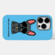 The design features a cute cartoon style illustration of a male blue coloured french bulldog wearing a blue collar and black aviator sunglasses. Font and background colour and be changed.