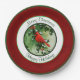 Male Cardinal and Holly Branch Red Paper Plate