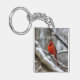A bright red Cardinal adds a pop of colour on a dreary snowy day.
