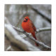 A bright red Cardinal adds a pop of colour on a dreary snowy day.