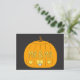 A cartoon pumpkin with 'Mr and Mr' carved into it and a lit candle shining through from inside.