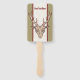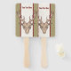 This program hand fan is tan with a centre white stripe bordered by two deep red stripes and a male brown deer head with big antlers. Customise your text on the front and back with the templates.