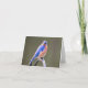 Beautiful male Eastern Bluebird sitting in the morning sun. His orange breast and brilliant blue wings glow in the early morning light. A perfect notecard to send to someone who needs a little joy in her or his life.