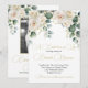 A floral bouquet in neutral colours and leaf foliage is the basis for this elegant custom funeral or memorial invitation.
