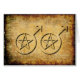 There's a cowboy theme to this gay male Wiccan wedding card. The parchment background gives it that Wild West antiquity. The main events though are the male symbols joined together in union, each with a Wiccan pentacle at their core.