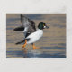 Male Goldeneye duck flapping on ice Postcard