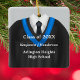 Personalised double-sided graduation keepsake ornament, decorated in black and blue school gown colours and necktie for that special male senior. Many other colour combinations available for males and females. Edit custom text on front and back in the easy Zazzle text editor.