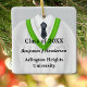 Personalised double-sided graduation keepsake ornament, decorated in white and green school gown colours and necktie for that special male senior. Many other colour combinations available for males and females. Edit custom text on front and back in the easy Zazzle text editor.