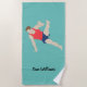 Male gymnast themed beach towel with customisable text.
