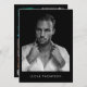 A customised modern male modelling / actor comp card with 5 photo, QR code and your text. Customise the text, photos and QR code and make it your own.