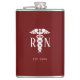 This drinking flask is designed with a white medical caduceus symbol and "RN" in white lettering on the front center. It is customized with registered nurse establish year of when he or she was licensed in the profession. Makes a great nurse graduation gift idea. Click "personalize template" option and enter year. You can also change the burgundy background color.