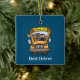 This ornament features my graphic of a male school bus driver and a bunch of kids in the bus. The front reads "Best Driver" but you can change or remove that. On the back, you can personalise this with a name and year. This makes a fun gift to give to your school bus driver for Christmas, or School Bus Driver Appreciation Day (4th Tuesday in April) or just as a gift anytime. Due to the design style, this can only be purchased on SQUARE ornaments only! Designed by Sheila Cicchi, Brownielocks.com. All Rights Reserved.