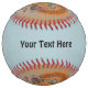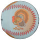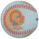 This custom softball is light blue and burnt orange with male turkeys showing off their tail feathers which are coloured in oranges and browns standing in a pile of Fall leaves. Customise your text with the templates.