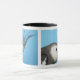 Beautiful Cockatiel gift with a gorgeous headshot of the whiteface male colour mutation. A great view of the parrot's superb crest, and a bright blue background. Wonderfully unique gift for bird lovers.