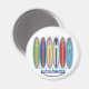Malibu Beach, it's a way of life. Six colourful surfboards on blue ocean sea spray depicting the Southern California lifestyle of sand, sea, and surf. Fun at the seaside with this unique, summer colourful Malibu Beach surfboards design. Enjoy the Californian image and lifestyle anywhere by sticking this original magnet from the Golden State by the Pacific Ocean to your refrigerator door.
